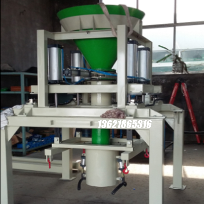 DCS1000-Z噸袋包裝機(凈重式)采用重力給料、計量斗凈重計量方式。主要由給料機構(gòu)、計量斗、機體、稱重平臺、掛袋裝置、夾袋裝置、升降機構(gòu)、輸送機、電氣控制系統(tǒng)、氣動控制系統(tǒng)等組成。該包裝系統(tǒng)工作時除人工套袋外包裝過程全部由PLC程序控制自動完成,依次完成夾袋、落料、計量、松袋、輸送、等程序;該包裝系統(tǒng)具有計量準(zhǔn)確、操作簡單、噪音小、粉塵少、結(jié)構(gòu)緊湊、安裝方便、可靠、各工位工序間互鎖等特點。